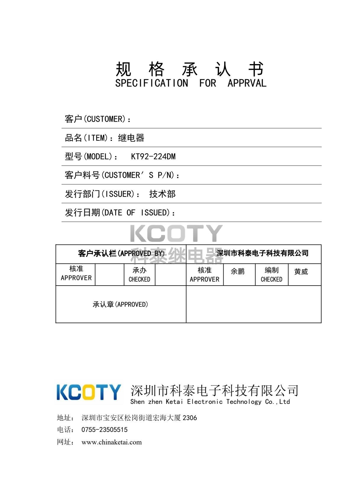 KT92-240ASPECIFICATION