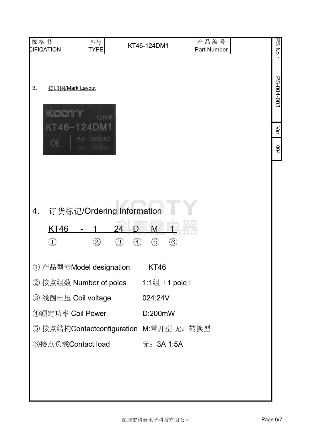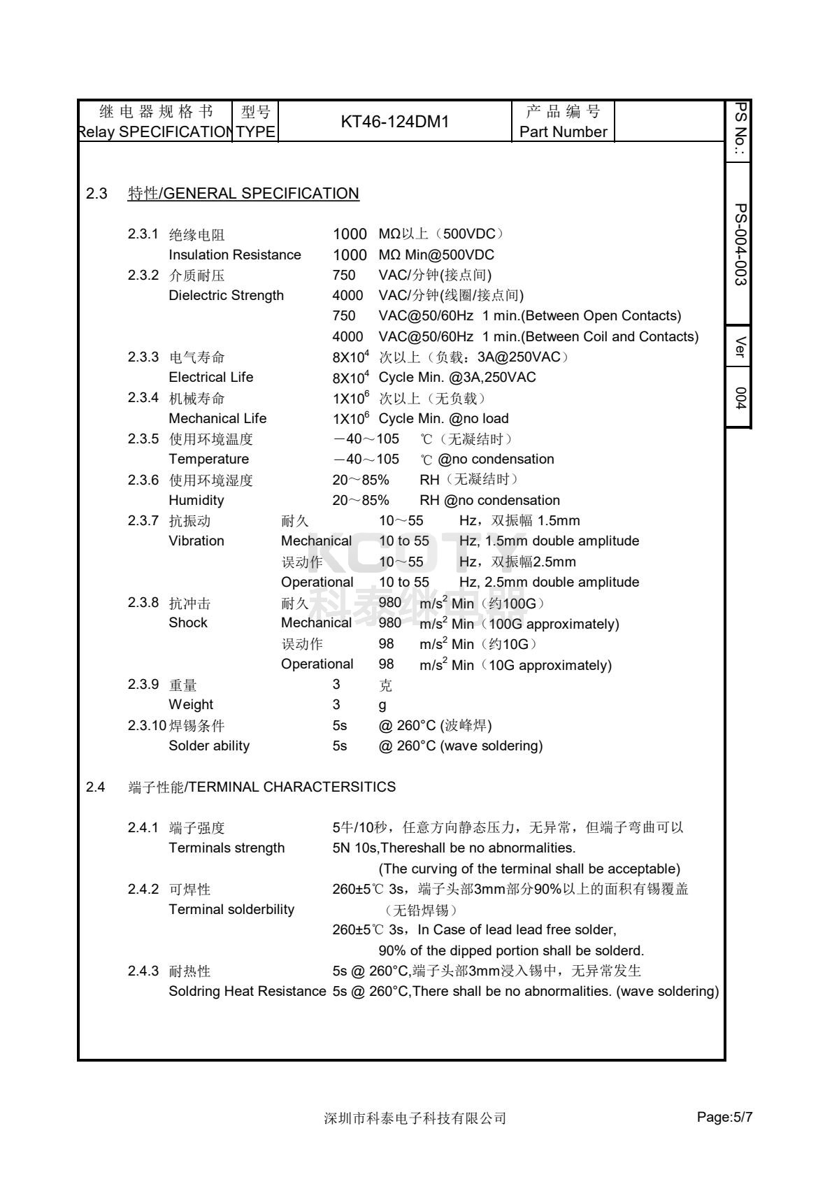 线圈参数:24VDC/0.20W,电阻 2880Ω±10%