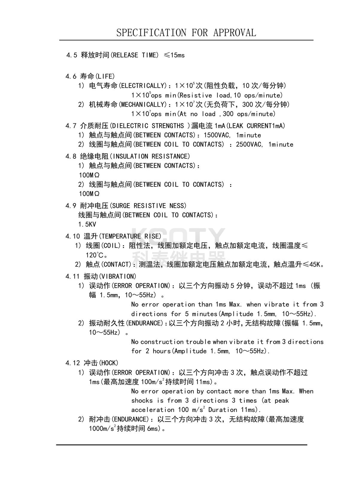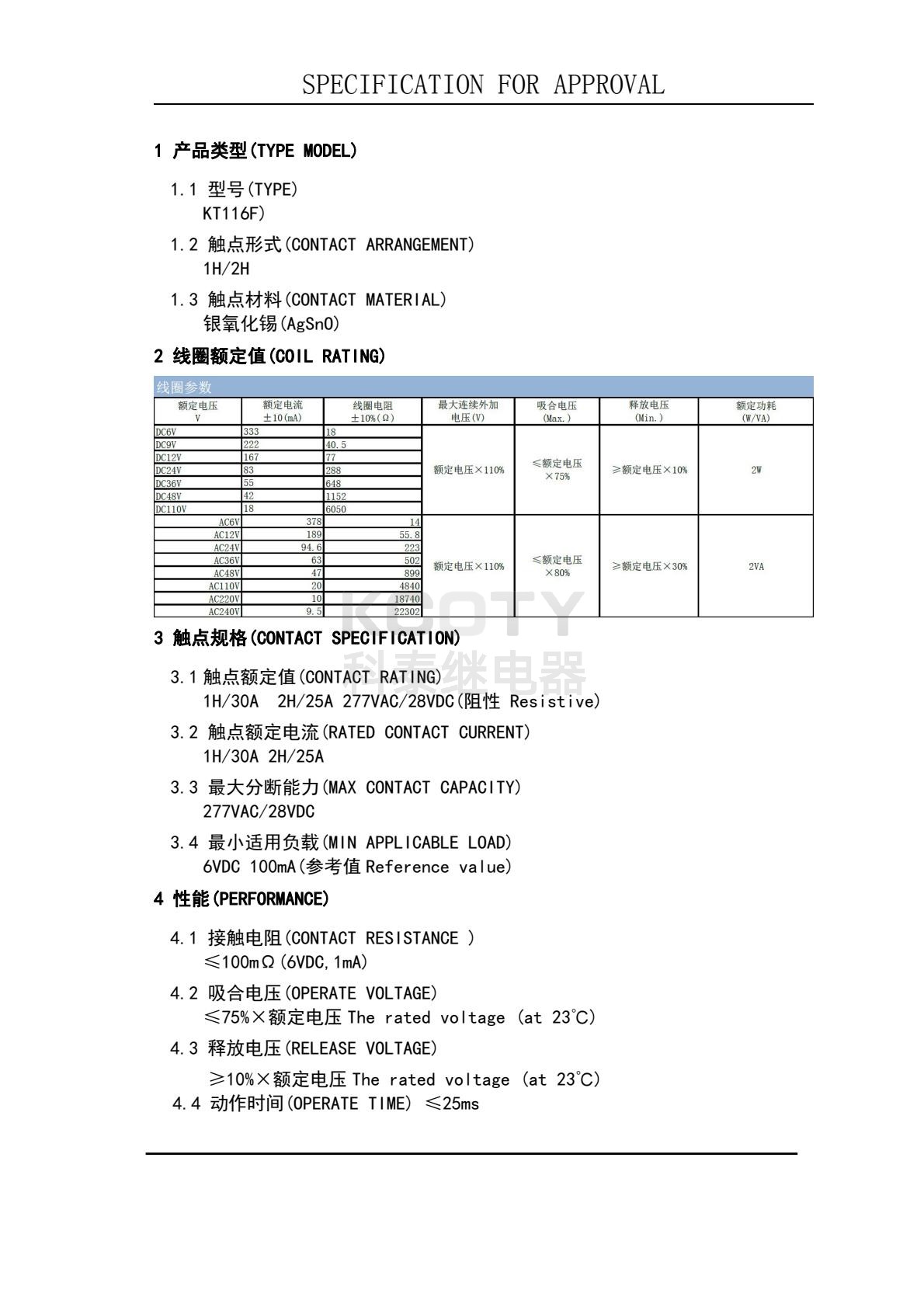 接触电阻≤100mΩ(6VDC/1mA),动作时间≤25ms,释放时间≤15ms