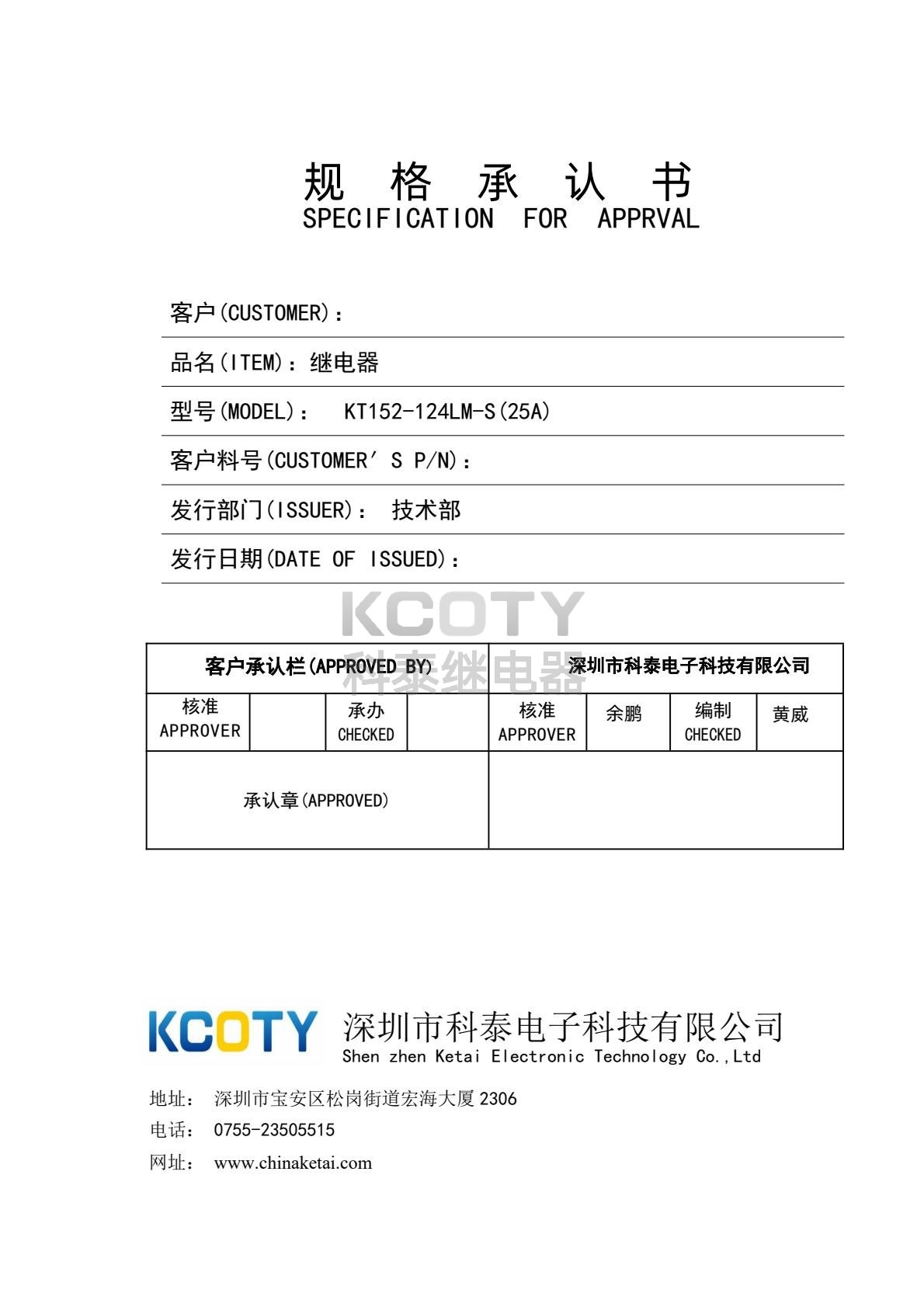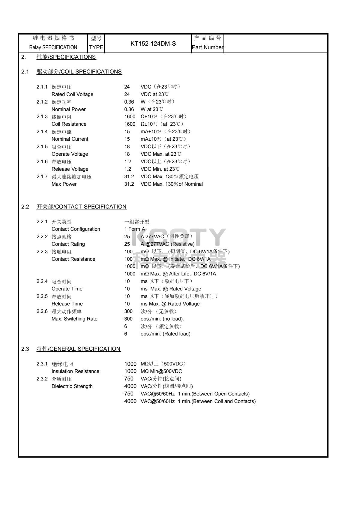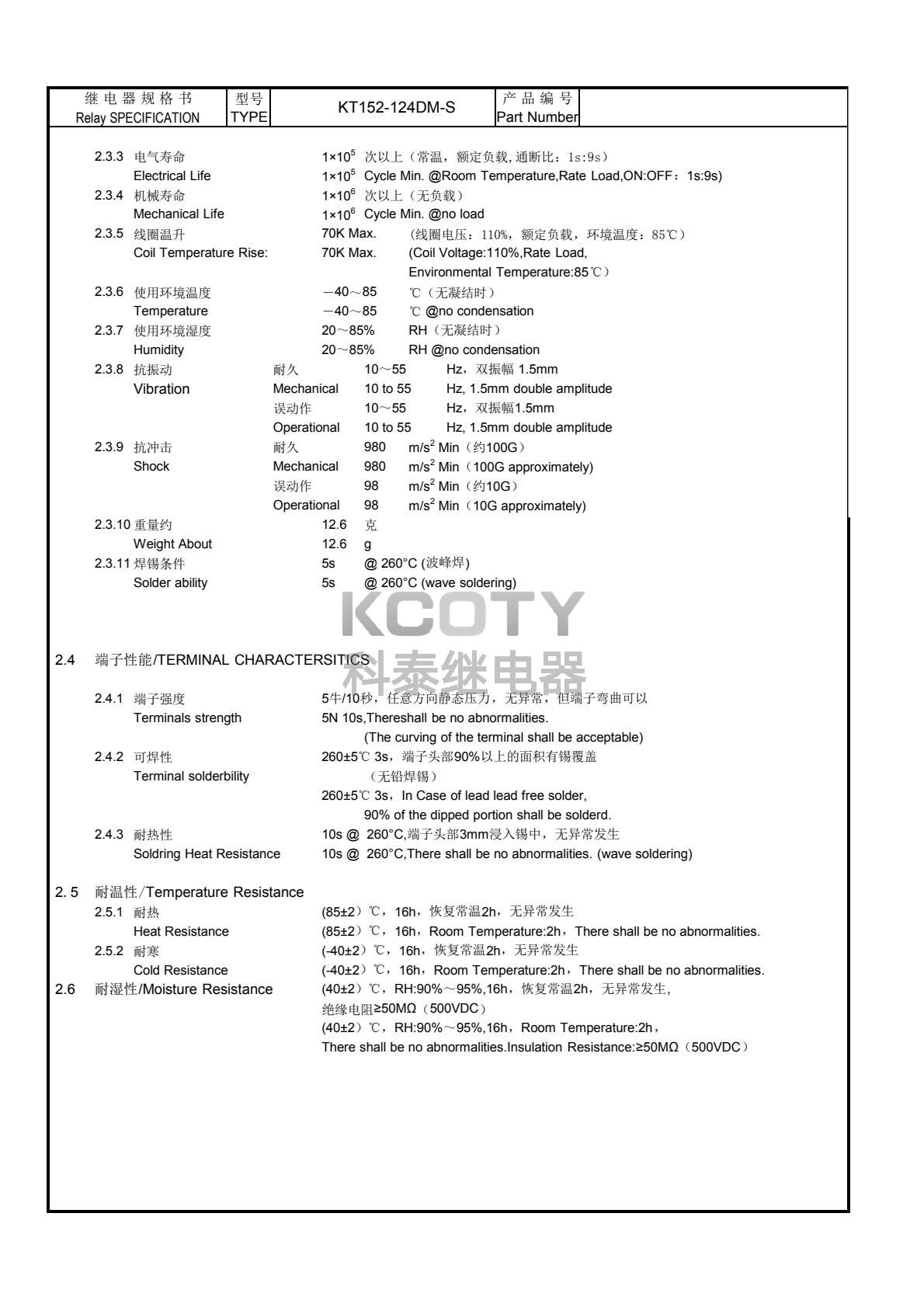 接触电阻≤100mΩ(初期值),动作时间≤10ms,释放时间≤10ms