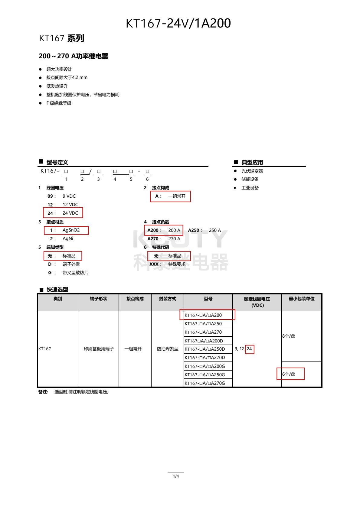KT167-A200:200A@1000VAC(阻性)