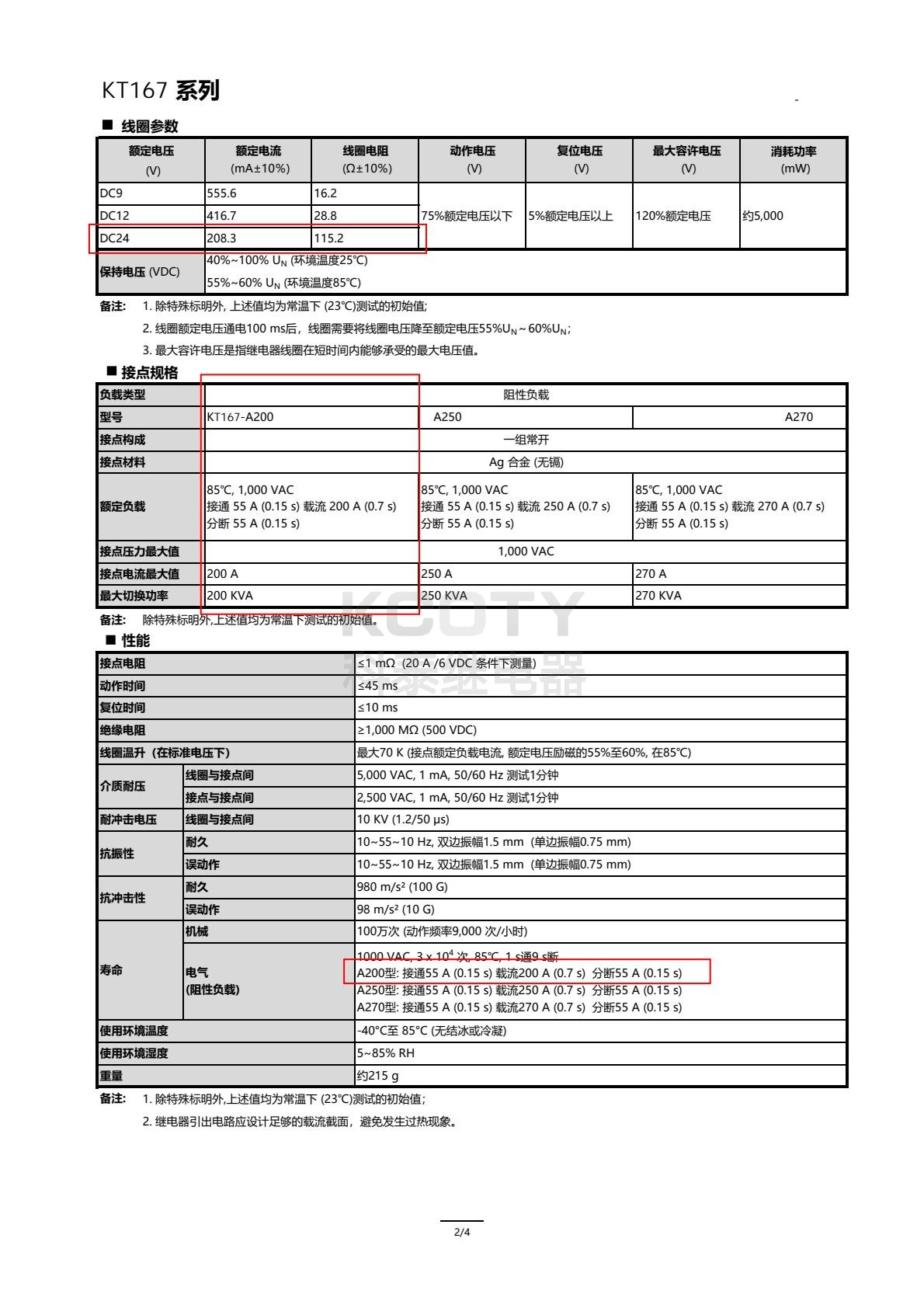 KT167-A250:250A@1000VAC(阻性)