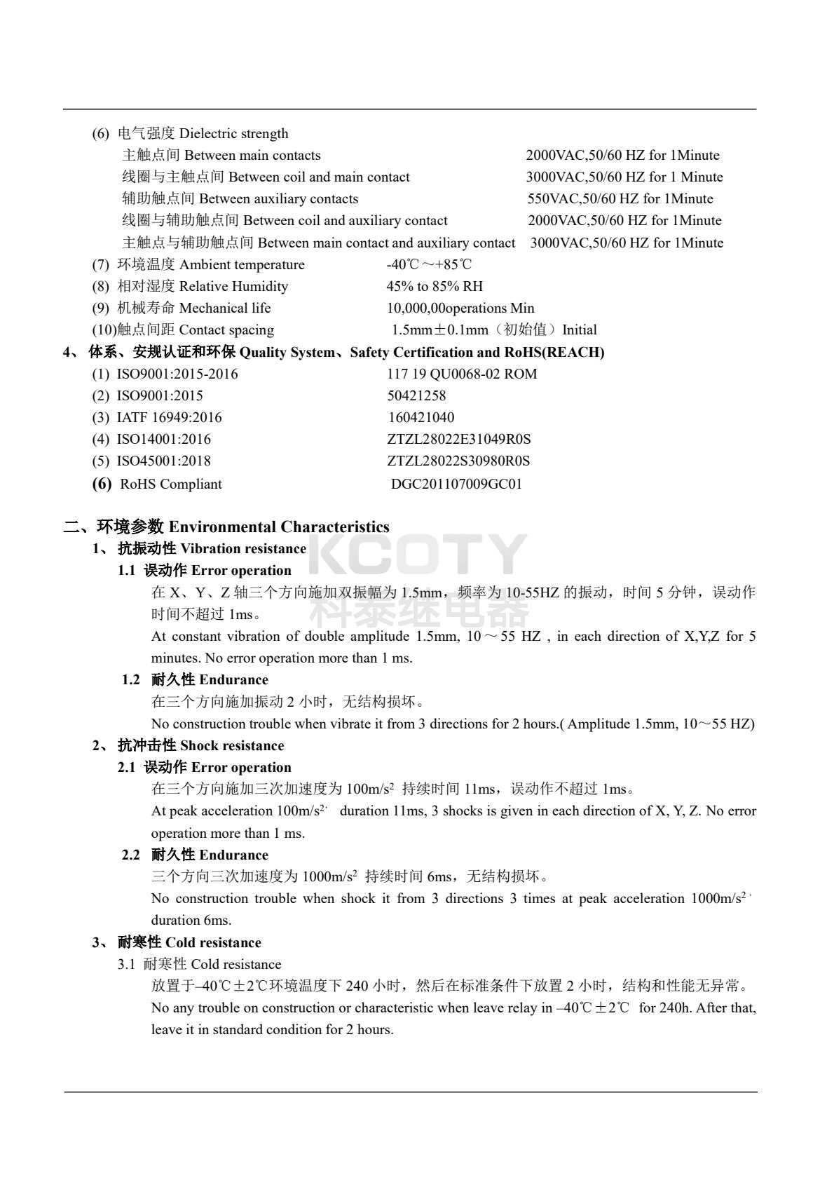 • 机械寿命:≥100 万次,电气寿命≥1 万次