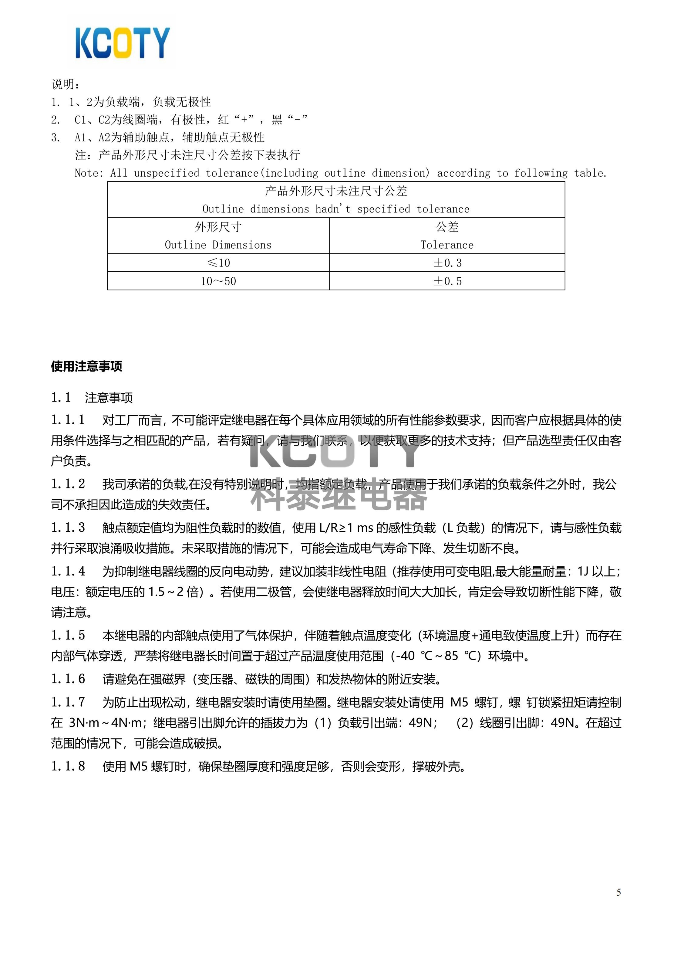 线圈参数:12VDC/6W(非节能型)