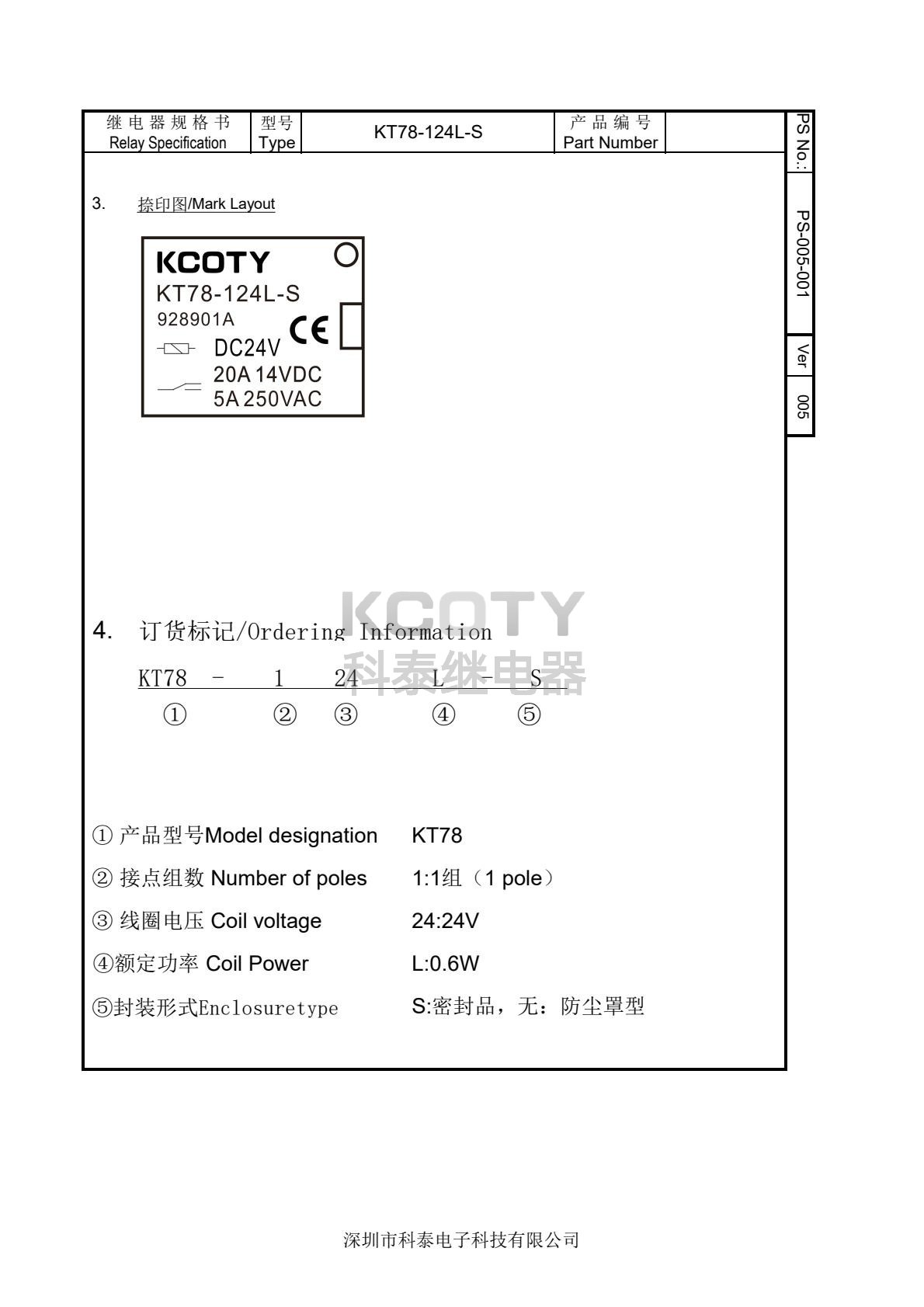 24VDC/0.6W,线圈电阻 960Ω±10%,额定电流 15mA±10%